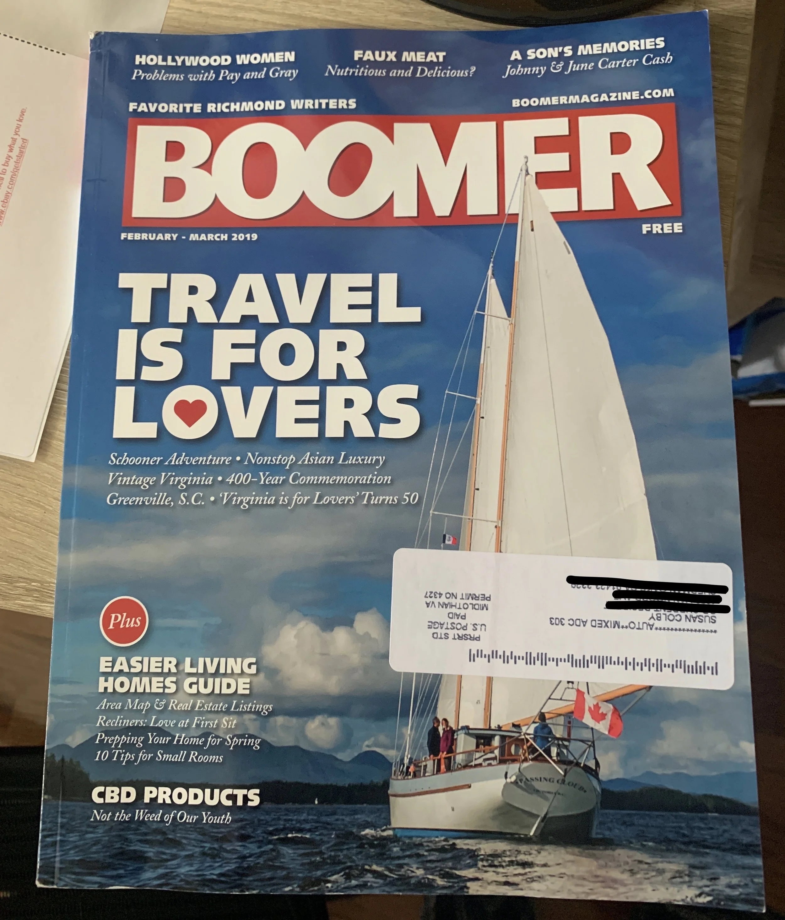 You might remember I did an interesting trip up to the Great Bear Rainforest last year. It was the second time I had sailed aboard Passing Cloud, the first being the previous year to HaidaGwaii. One of the publications, BoomerMagazine just published the short piece I did, plus used one of the images on the cover! As you can imagine, I am thrilled!