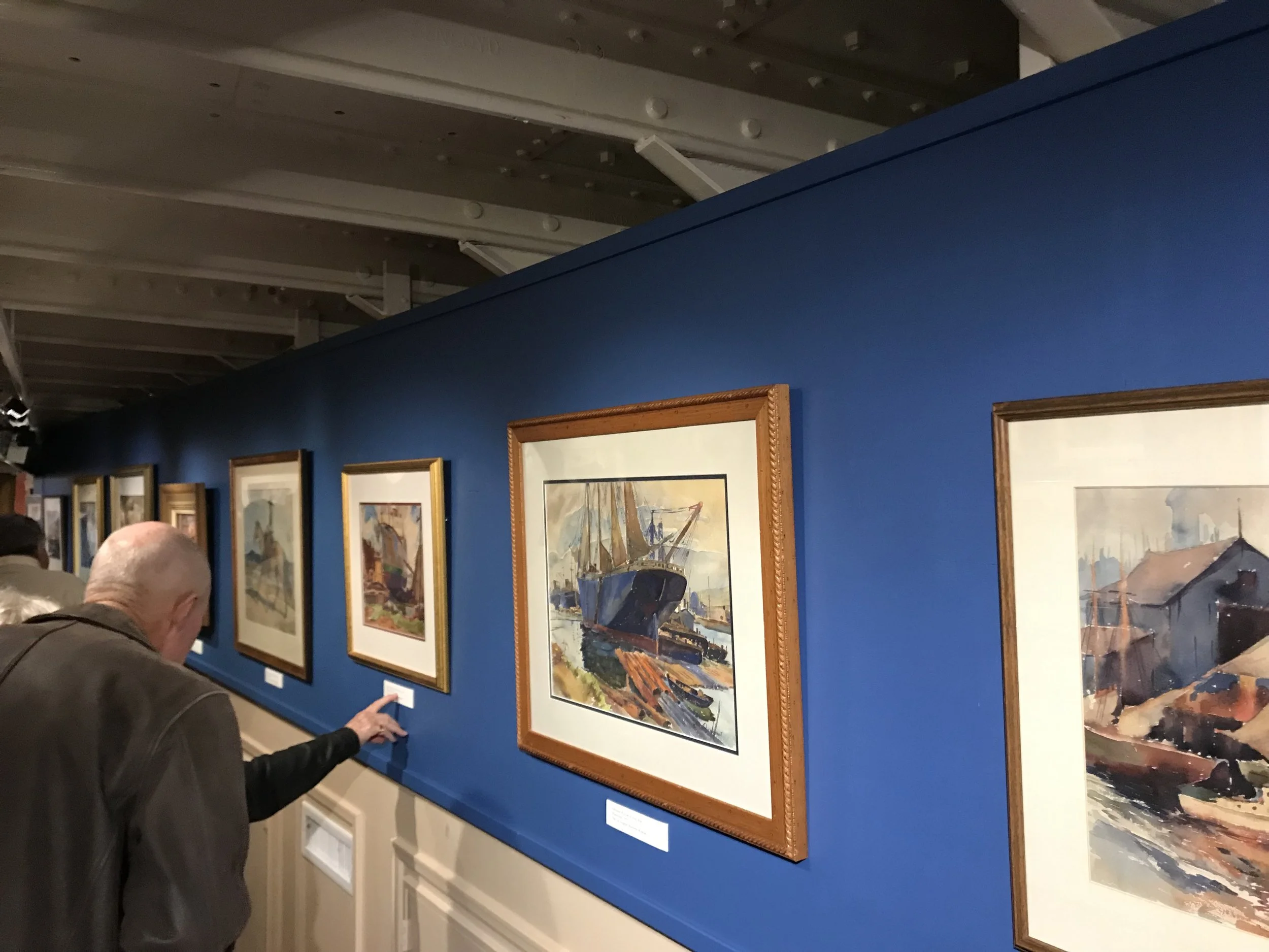 Last night, Georgia and I and her cousin Linda and husband Jim went down to an art opening at the San Diego Maritime Museum. The rain had stopped but it was very chilly down on the water. It was a really interesting opening as there were actually two exhibits; a plein air and an historical one. They were both on the 1898 steam ferryboat Berkeley, with the Arthur Beaumont “Art of the Sea” exhibit in a specially created, climate controlled gallery. A very impressive body of work which we will go back to see, as there were so many people, it was difficult to see and appreciate some of the very large pieces. Both Georgia and I found an artist in the plein air gallery that we liked and will take a closer look when we go back.