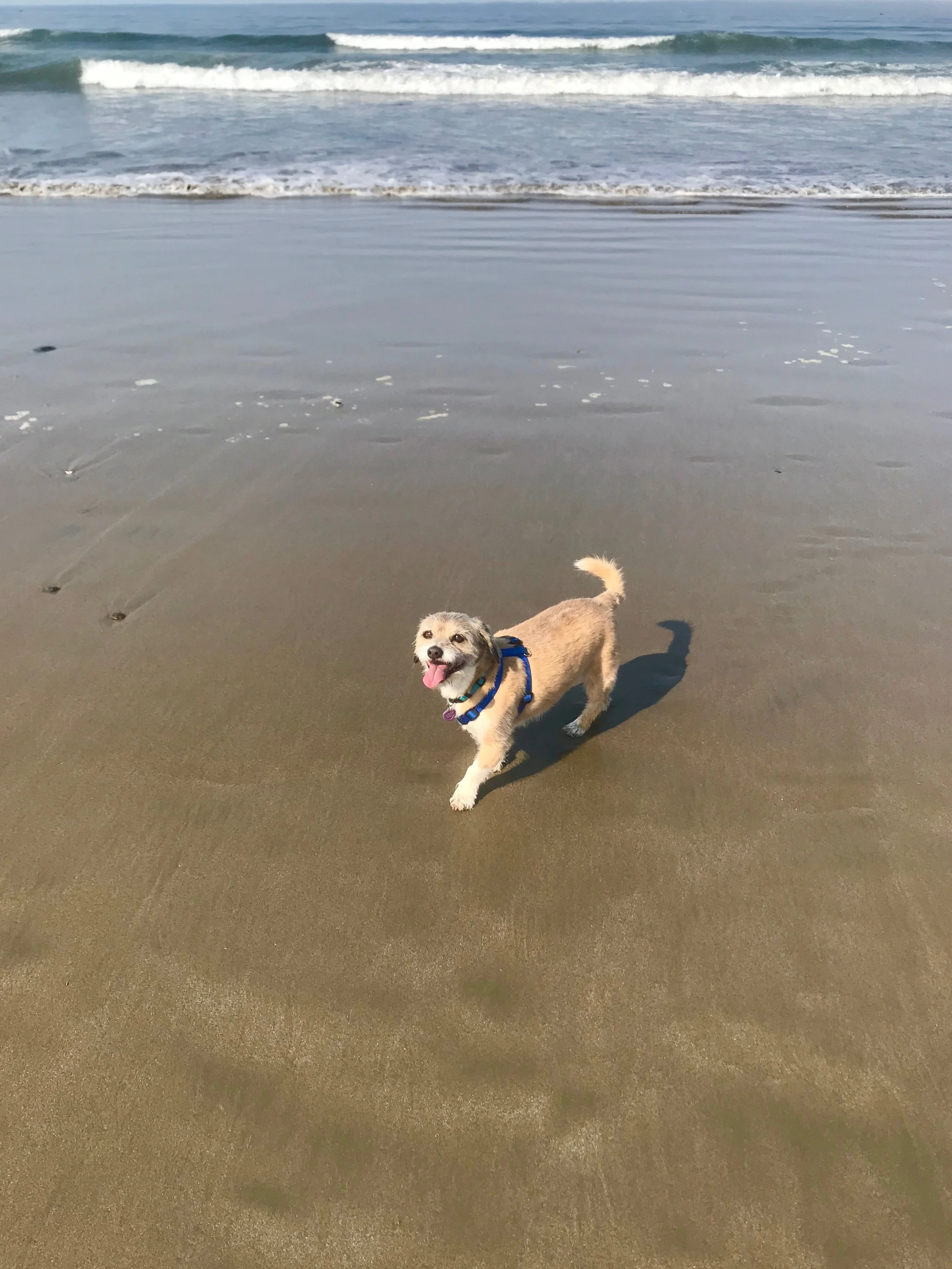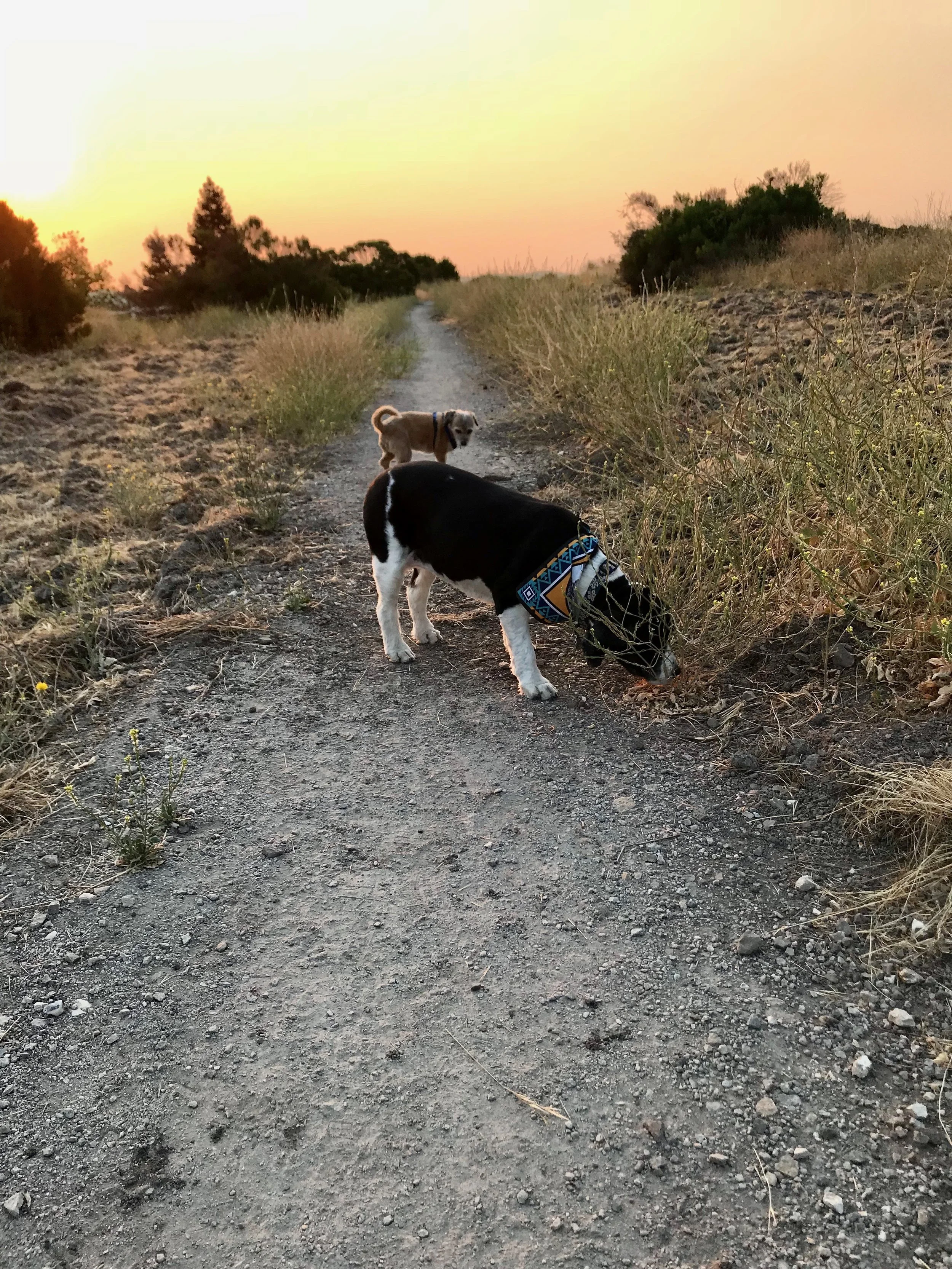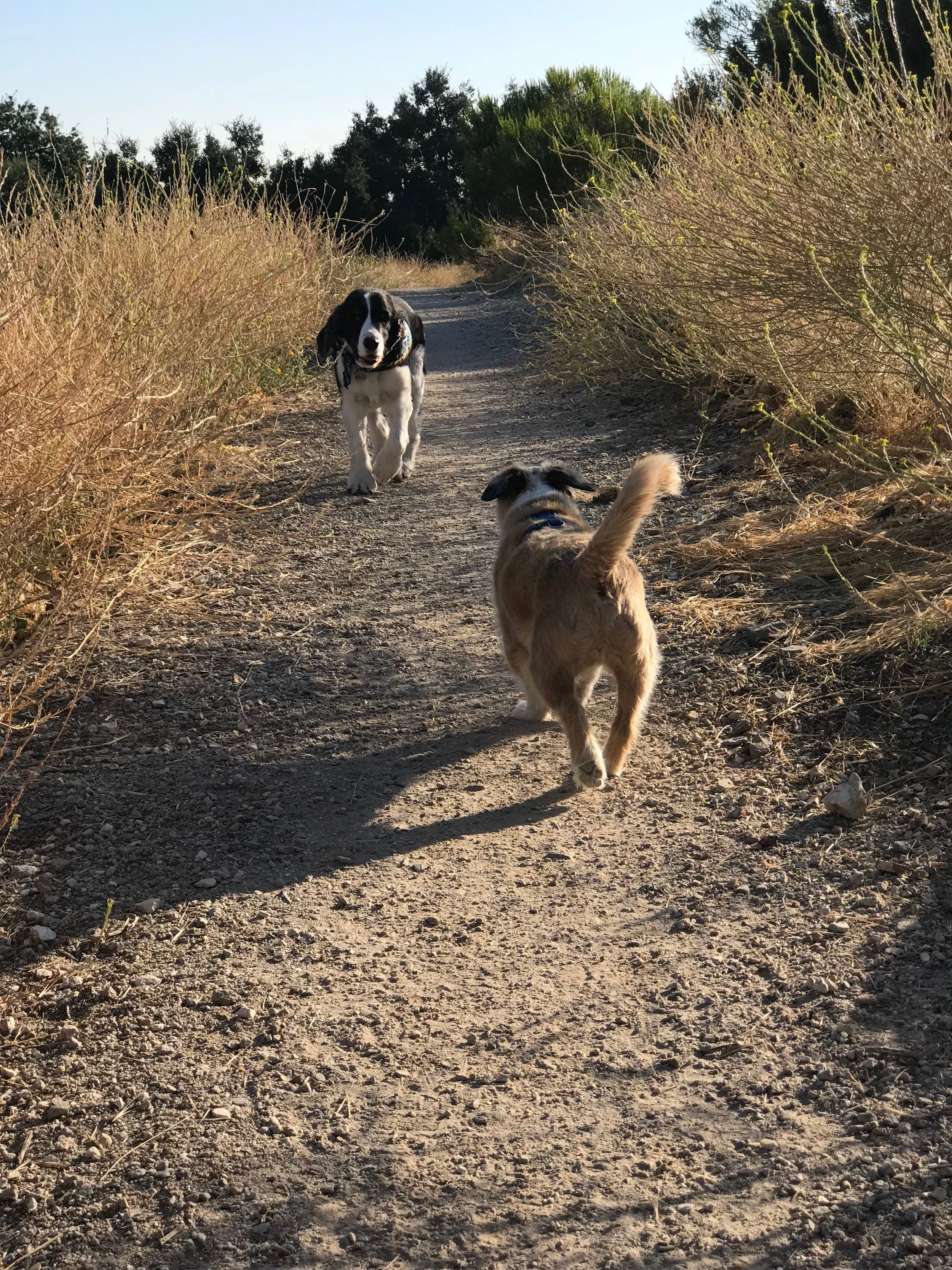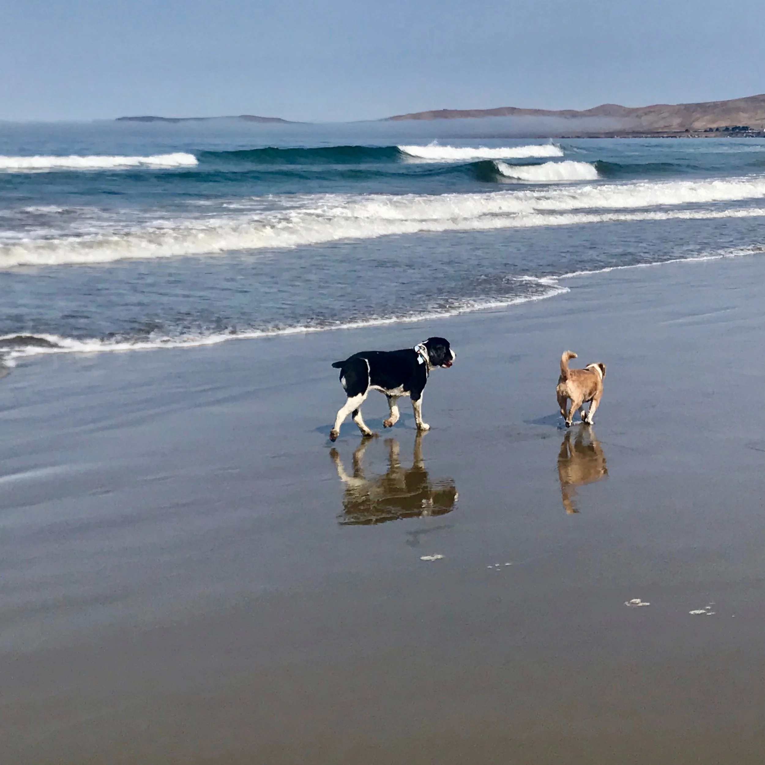 Life here mostly revolves around walks and taking the dogs to the beach at Cayucos, which is a fantastic dog beach. But because both dogs have physical issues, we do ambles, rather than walks! But it's a good routine, once in the morning and once in the evening, if it's not too hot! For the first week, it was up over 100F every day, but plummeting to 50F at night, perfect for the grapes the cover the hills here. This morning was the first cloudy morning which didn't last long, burning off by mid-day but only up in the 80s.