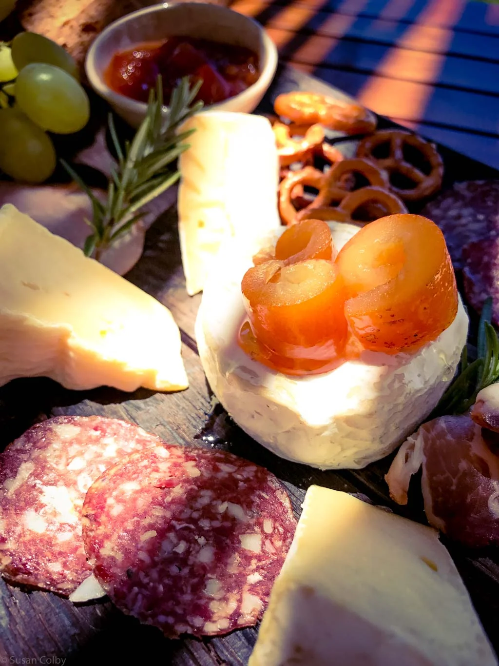 The food arrived on an enormous serving tray, created from oak barrel staves and was loaded, and I mean really loaded, with local cheeses, meats, olives and preserves. It was a lifesaver as the wine glasses were never empty!
